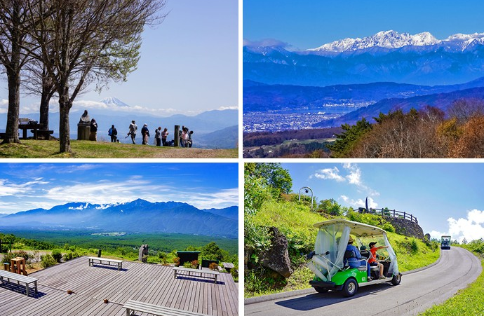 오후에는 일본 남알프스 산맥과 후지산 그리고 북알프스까지 한 눈에 조망할 수 있는 후지미고원 전망대를 산책합니다. 오르내리는 길은 편안히 승용 카트를 직접 운전하며 오르게 됩니다.