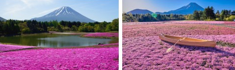 후지산 일대의 명소인 모토스코 천엔전망대, 가와구치코 오이시공원, 유람선 탑승과 모토스코의 시바사쿠라마쯔리를 찾아 산책합니다. 특히, 눈 덮힌 후지산과 모토스코 호수를 배경으로 무려 50만주의 시바사쿠라가 광활한 산록을 뒤덮고 피어난 장관은 잊지 못할 아름다운 풍경입니다.