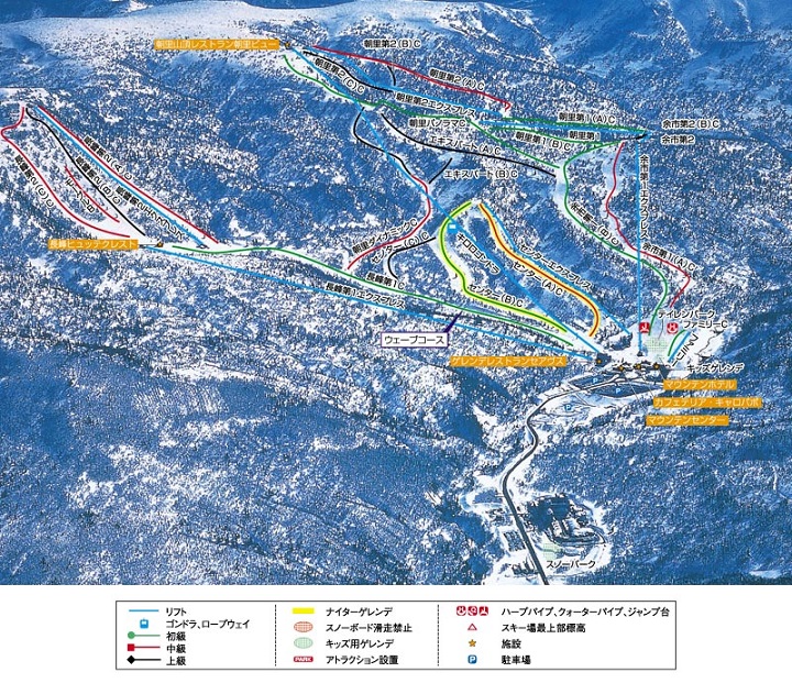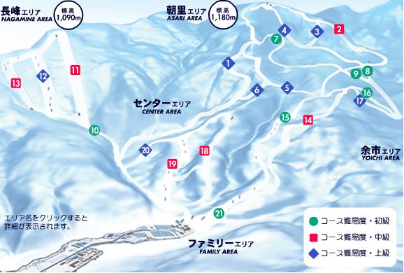 키로로 리조트는 아사히다케와 나가미네, 요이치다케. 크게 셋으로 나누어 진다.