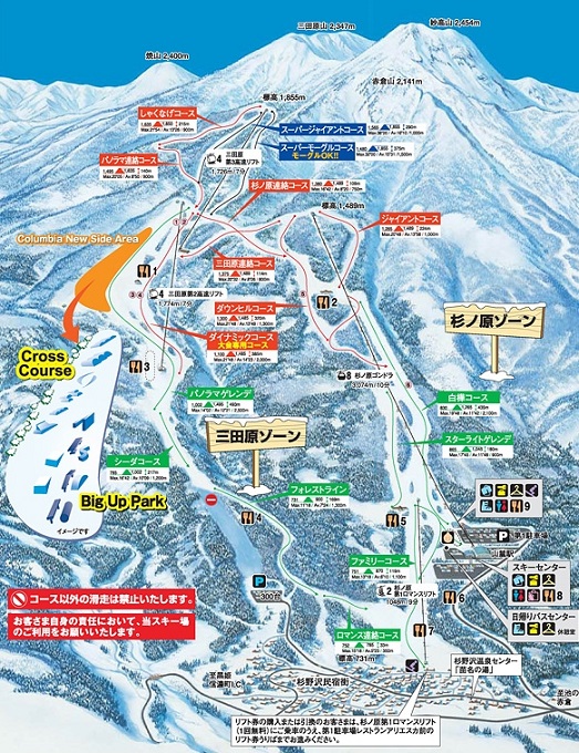 일본내 스키장 중 최고의 표고차, 최장의 다운힐 코스를 자랑하는 스기노하라 스키장.