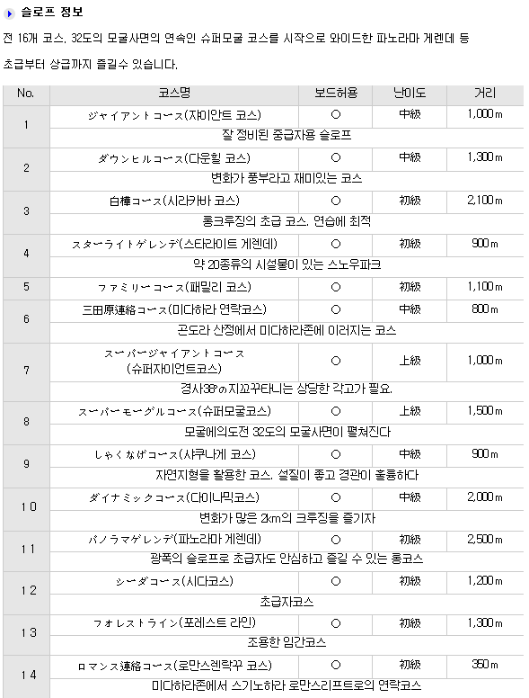 - 16코스/리프트12기(곤돌라1기)